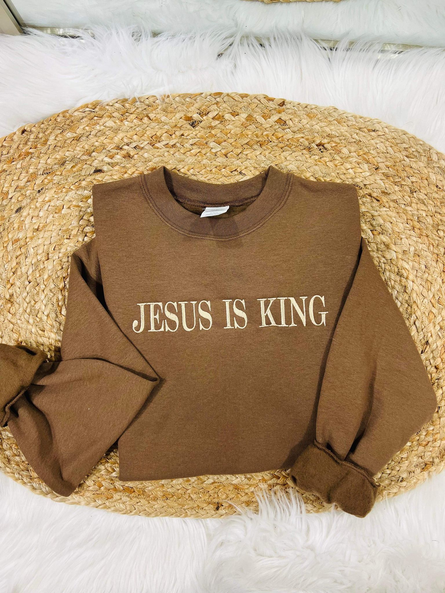 Jesus Is King Simple Embroidered Sweatshirt