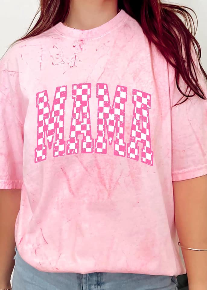 Mama Distressed Checkered DTF Tee