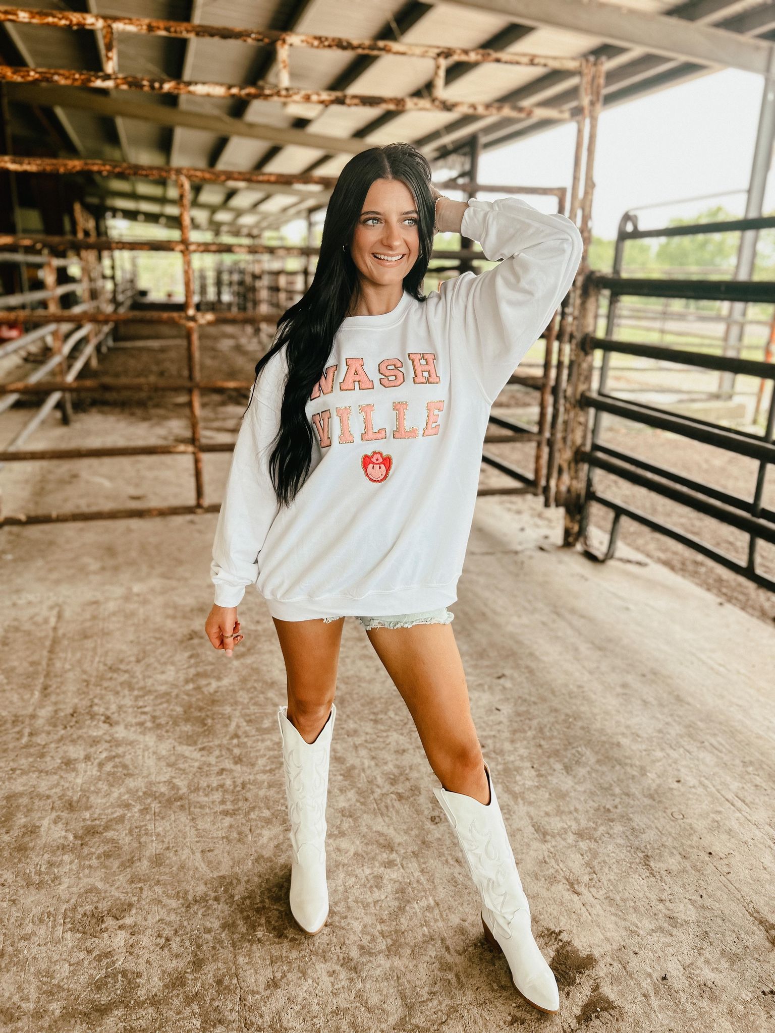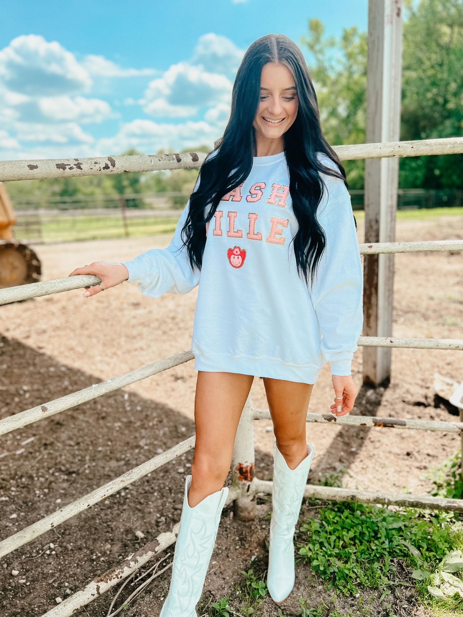 Nash Pink Cowgirl Happy Patch Sweatshirt