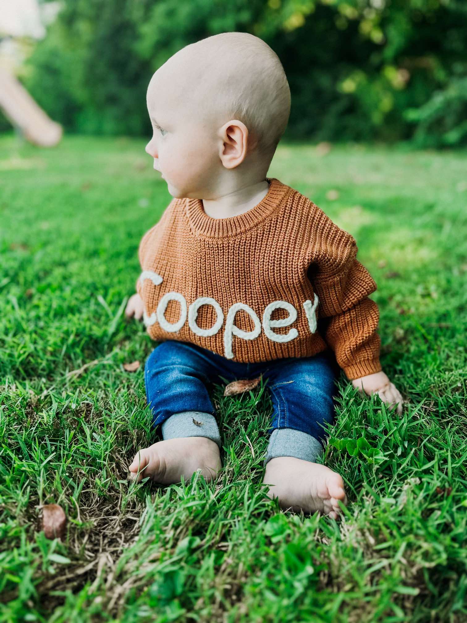 Get cozy and stylish with our chain knit, chunky, oversized sweaters! Customize your own unique look with 17 color options, 38 yarn choices, 4 fonts, and 12 embellishments. Available in sizes 0/3m to 7t. Stay warm in a fun and playful way!